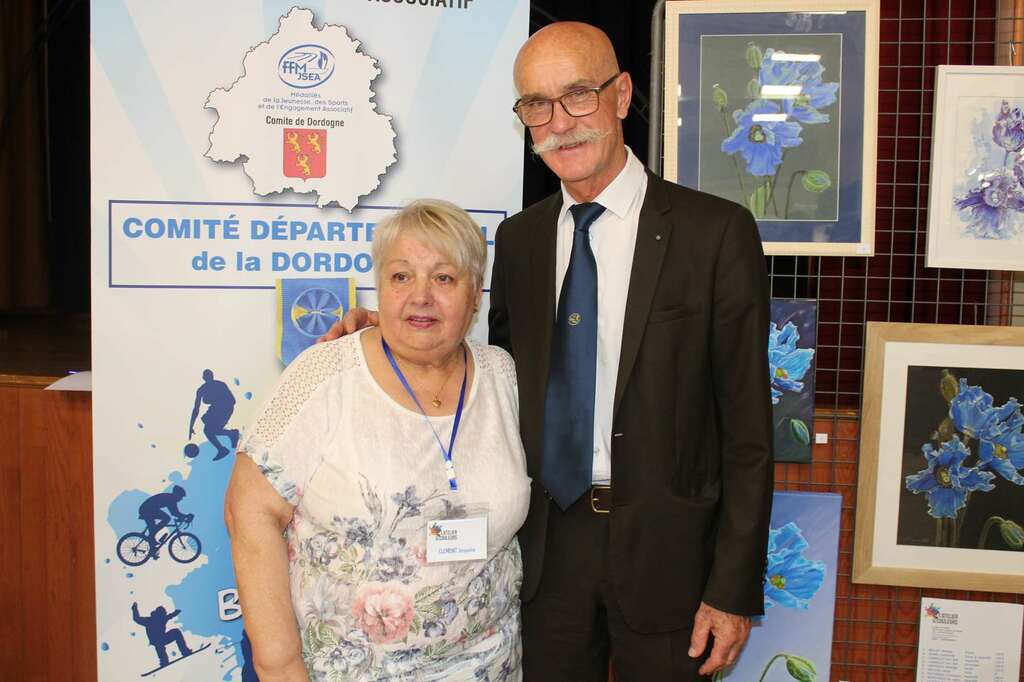 A l'invitation de M. Laurent PEREA Maire, le président Francis MONTAGUT (CDMJSEA 24) s'est rendu à l'exposition de peinture afin de mettre à l'honneur une bénévole.